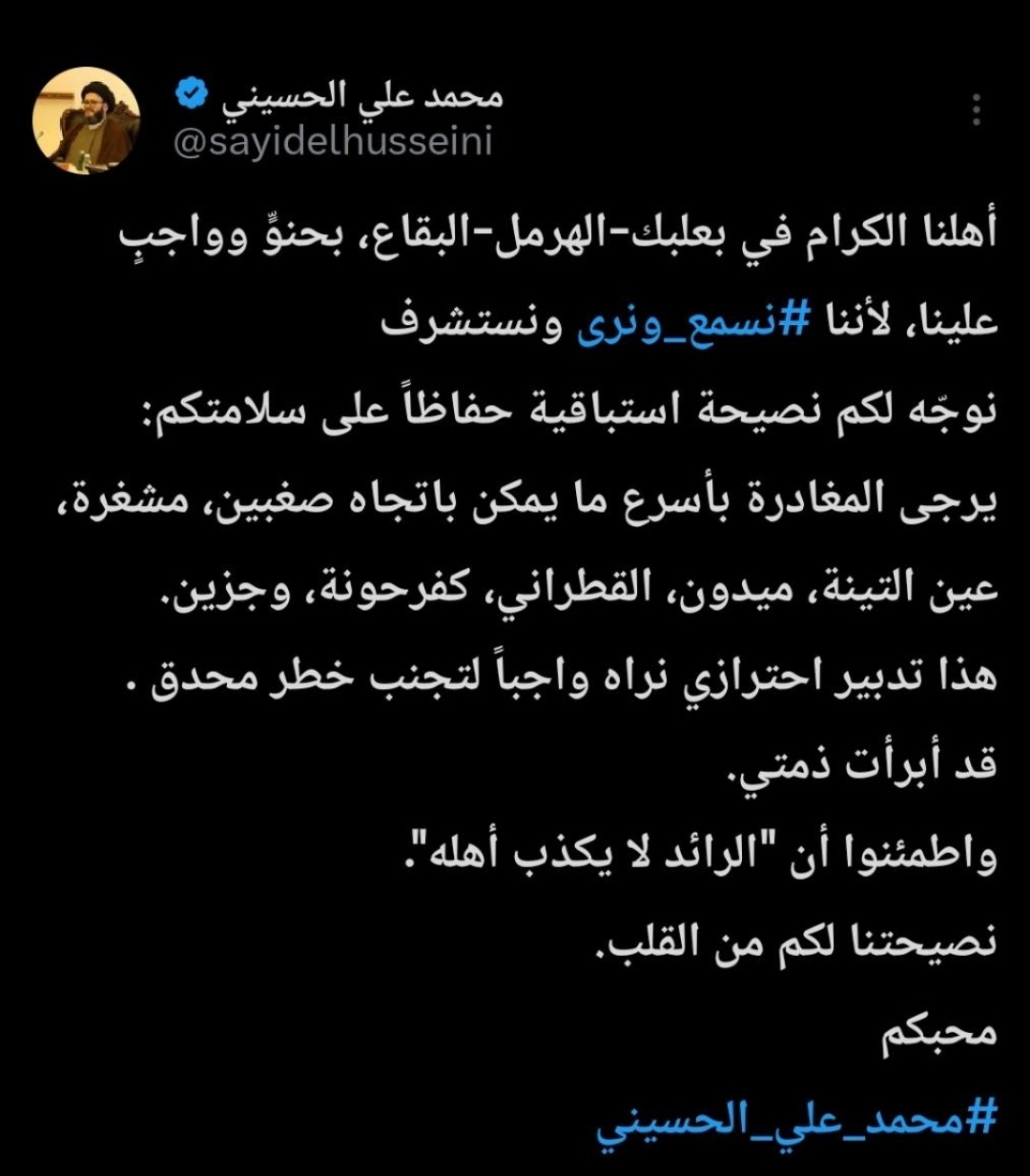 ماذا قال الحسيني لبعلبك الهرمل……